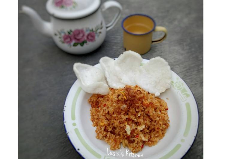 - Haluskan cabai merah, cabai rawit, bawang merah, bawang putih, terasi, kemiri dan garam.Panaskan minyak dan tumis bumbu halus sampai matang.Tambahkan nasi dan masak sampai rata.Masukkan kecap manis, aduk nasi goreng dengan api kecil saja.Angkat dan sajikan dengan telur atau bahan pelengkap lainnya..