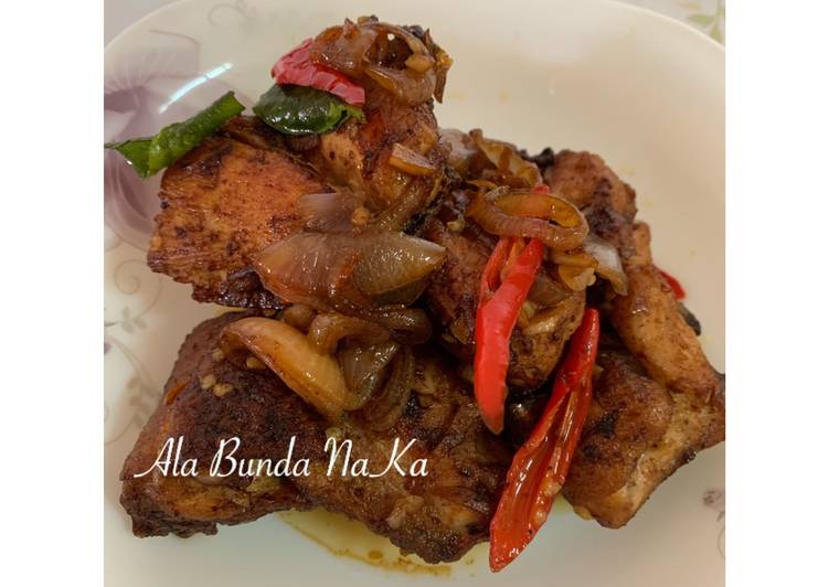 - Marinate ayam dg bahan marinate selama 10 menit. Lalu goreng dg minyak + 2 sdm mentega hingga matang. Angkat tiriskan..